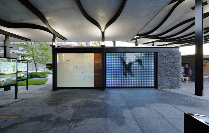 A recent Boston Globe editorial cites the BCEC Marquee and the LED panels at the Boston Harbor Islands Pavilion as two examples of video displays that enhance the public realm.