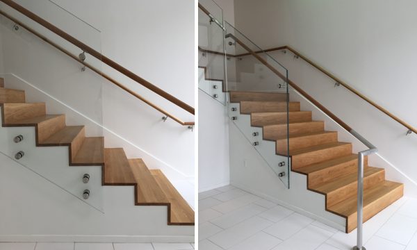 The lobby stair was completed this week at Utile and Evergreen Property Group’s 22-26 West Broadway, marking the final piece of construction. The custom-designed stair, with white oak-clad treads and risers and a structural glass guardrail, connects the ground floor lobby to a larger shared library/lounge and outdoor courtyard on the second floor. The mixed-use building opened to its first residential tenants in May 2015 and is anticipating a summer opening for the ground floor restaurant.