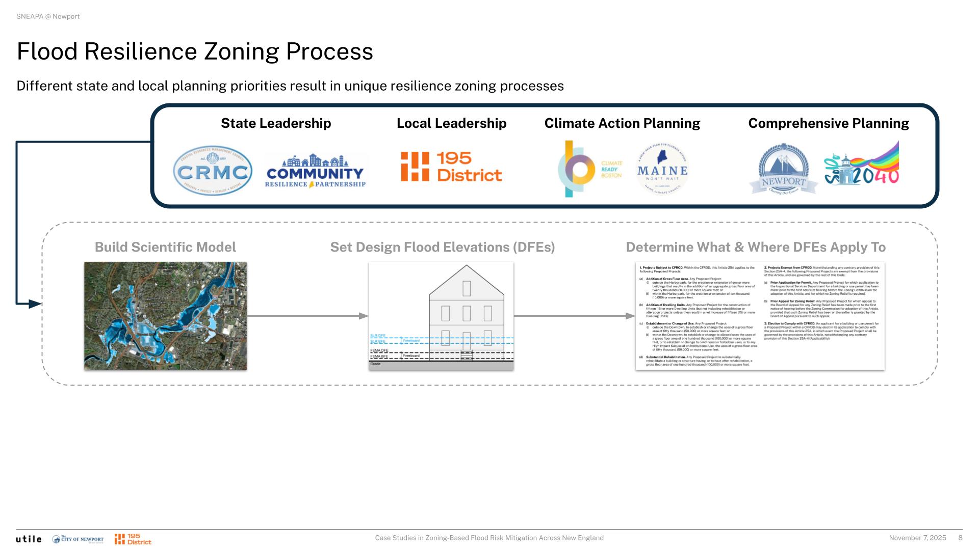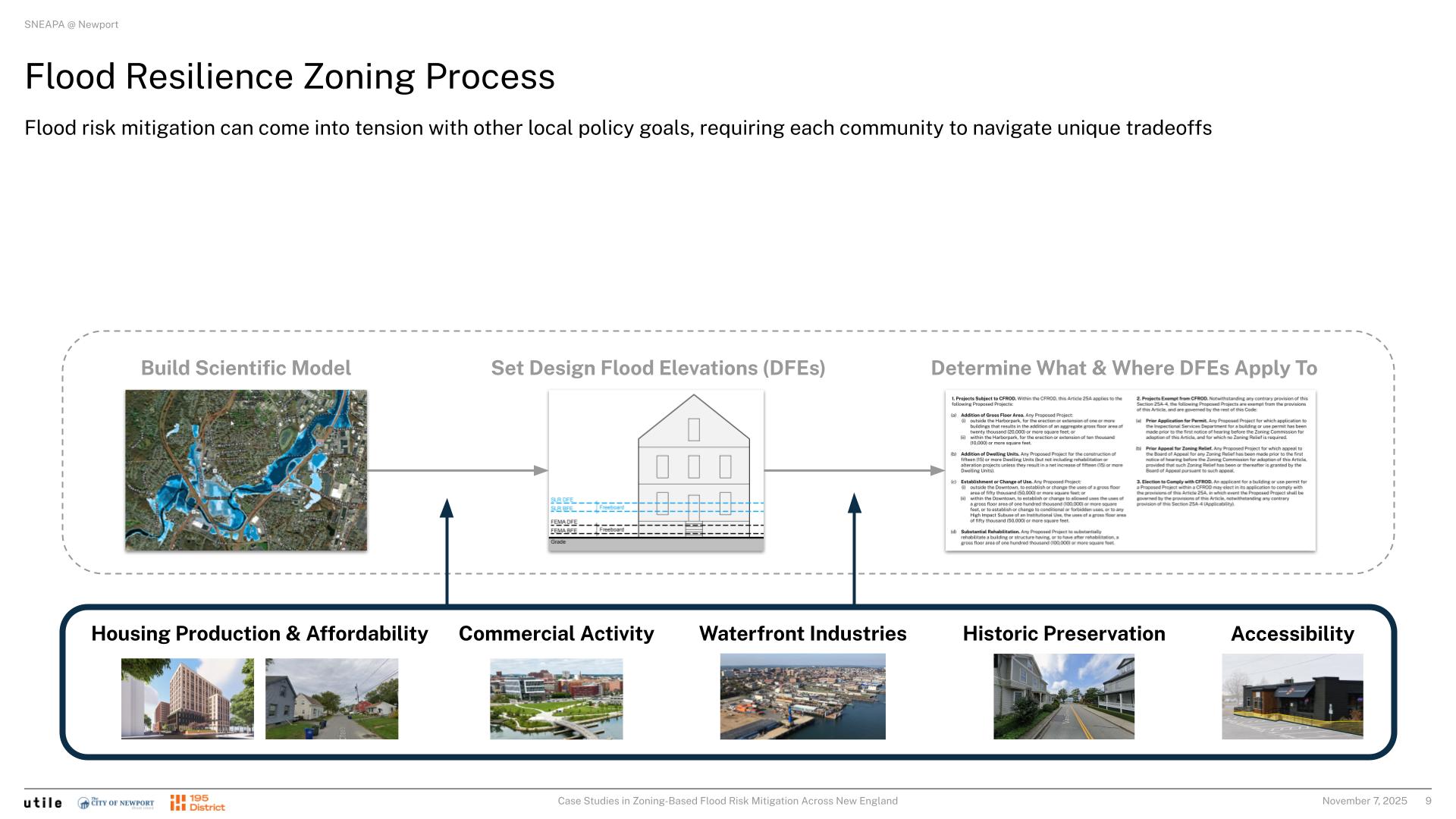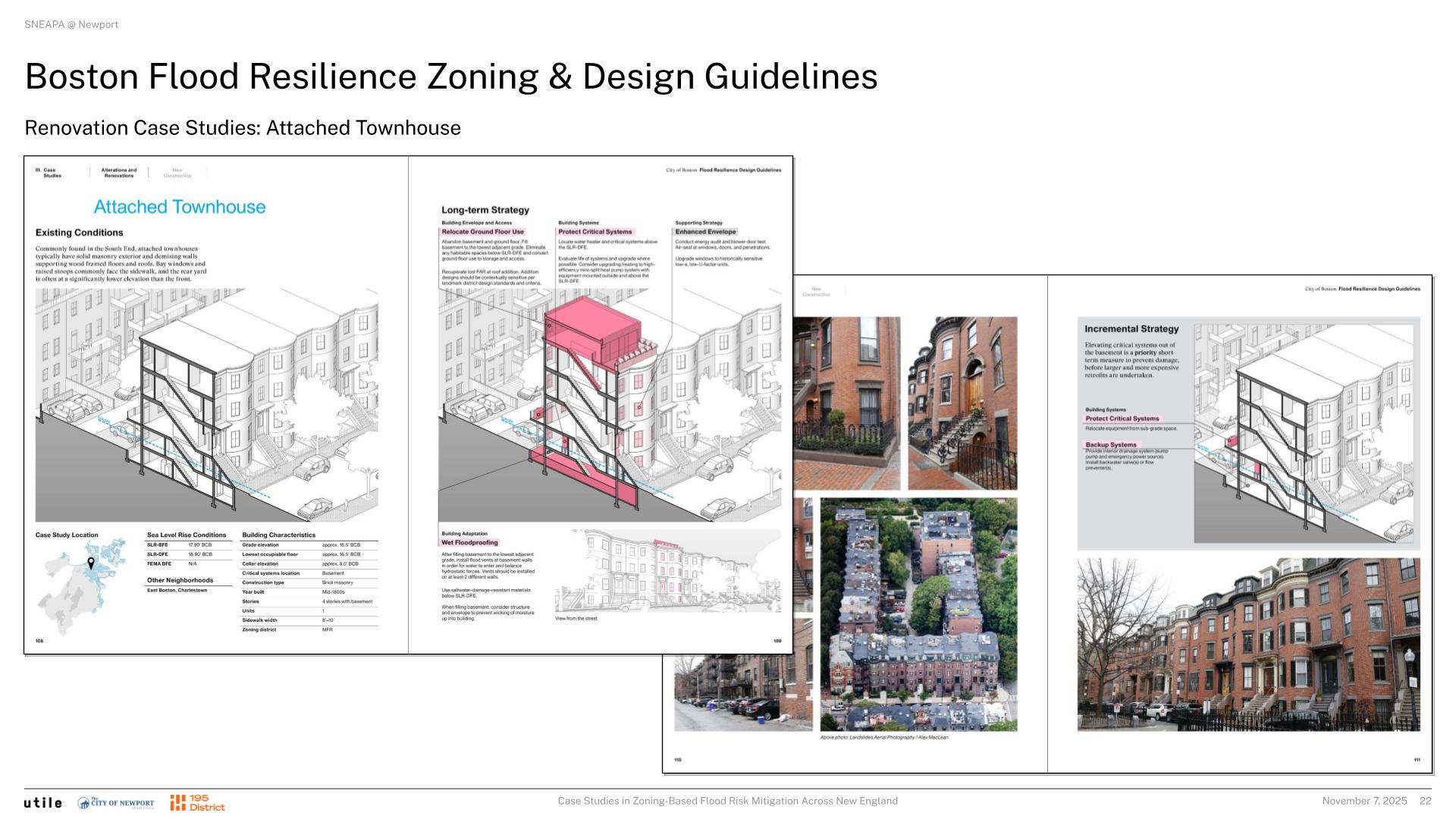 Matthew Littell, Zoë Mueller, and Emily Fang presented Case Studies in Zoning-Based Flood Risk Mitigation Across New England, a panel focused on resilience zoning case studies in Boston, MA, Providence, RI, Portland and South Portland, ME, as well as Newport, RI’s Elevating History and History Above Water initiatives, to highlight how intentional processes can produce a custom approach for each community.