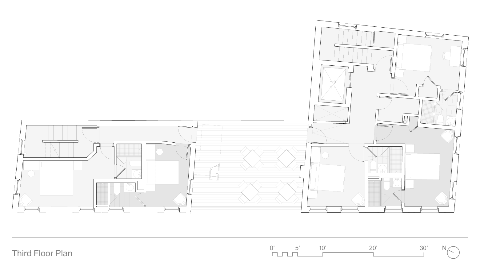 The project handled the historic landmark, which is actually three buildings that were combined into one over the years, with great sensitivity, balancing a complete interior renovation with careful restoration of the exterior, including improved insulation, new windows, and a complete repointing for a tighter, more energy efficient envelope.