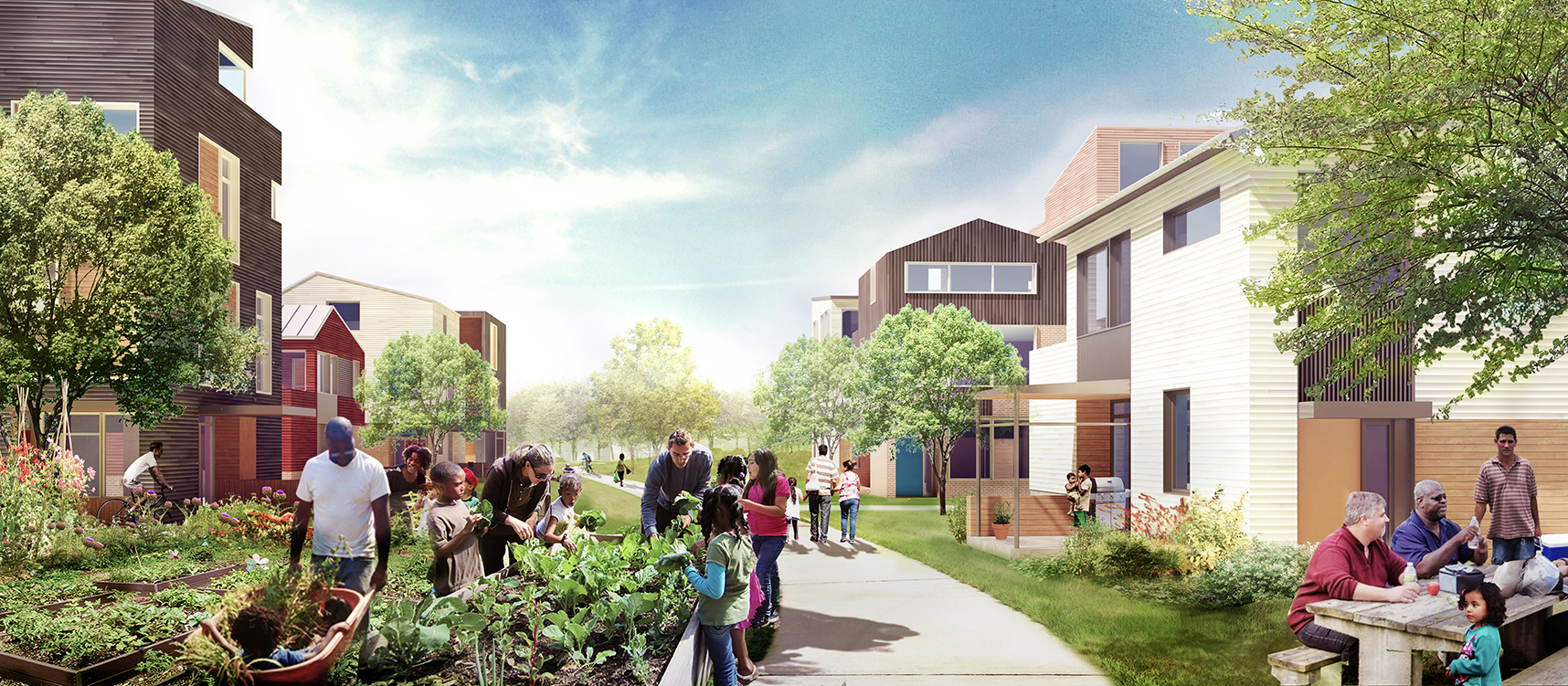 Utile was subcontracted by MVVA to design conceptual plans for select sites not intended for future use as parks. At Lockwood South, Utile interwove a plan composed of both single- and multifamily building types with public green spaces of various scales, including a public promenade providing direct access to waterfront parkland for visitors to create a regional destination. The principles of this plan were developed into design guidelines that will shape the development of other riverfront sites in the sector.