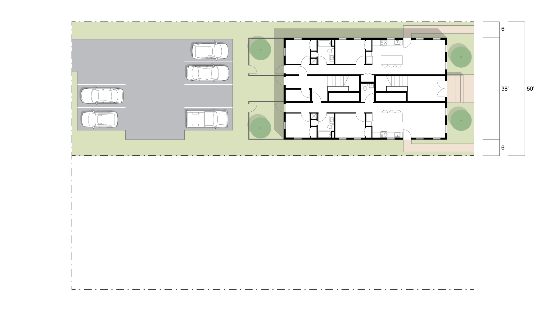 Utile first developed a family of development prototypes that were both sympathetic to the historical character and scale of the neighborhood and appealing from a market perspective, which were then tested in both infill and multi-plot scenarios to guide the conceptual plan for the future build-out of Brush Park. By extrapolating the neighborhood’s future population from this build-out, Utile was able to design a fine-grain, multi-layered open space network to meet the needs of future residents. This culminated in the conceptual design of one key open space: the Beaubien Street Greenway, an off-street, multi-use path for pedestrians and bicyclists lined by trees and rain gardens and linked to a new park at the center of the neighborhood.