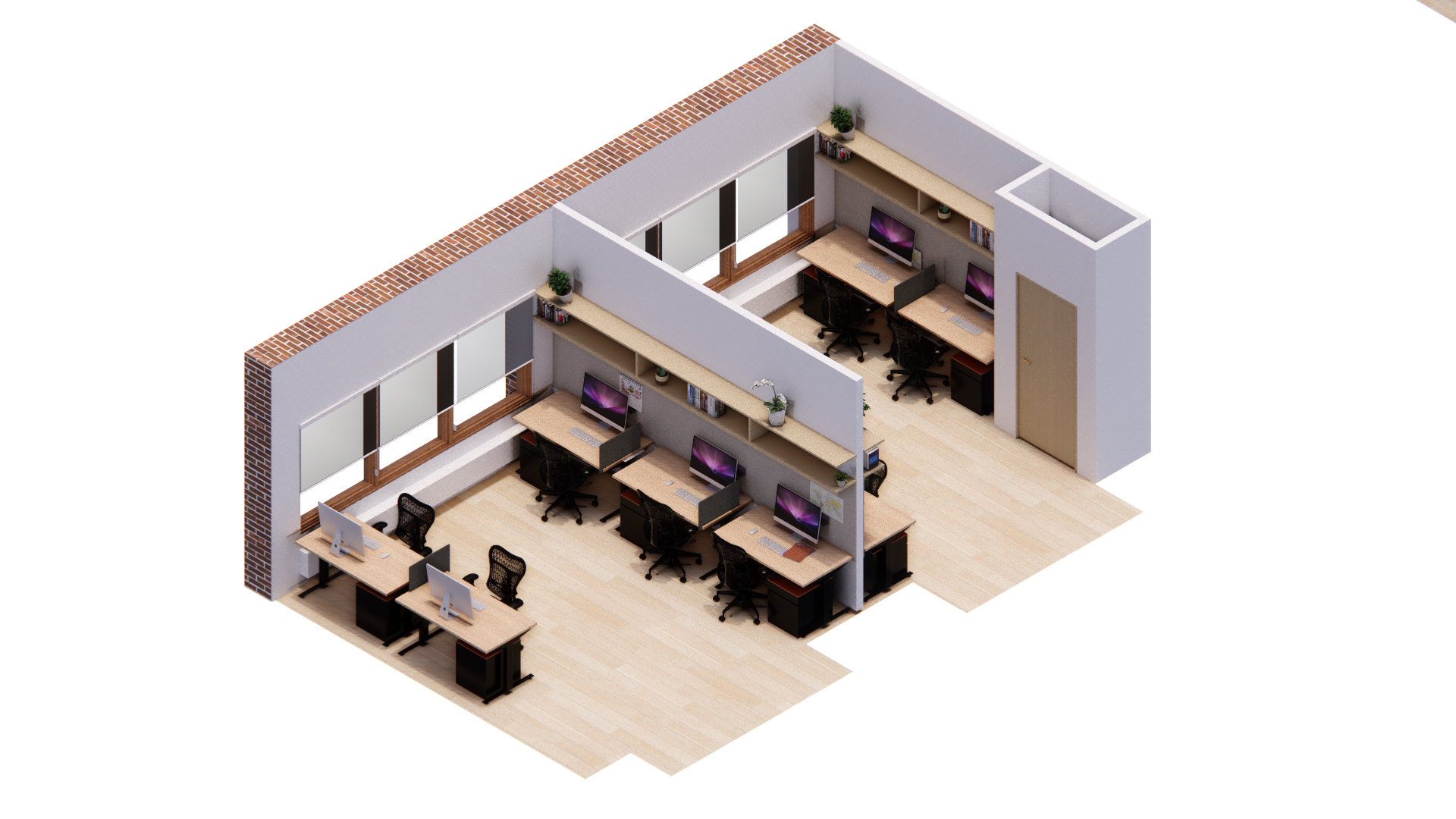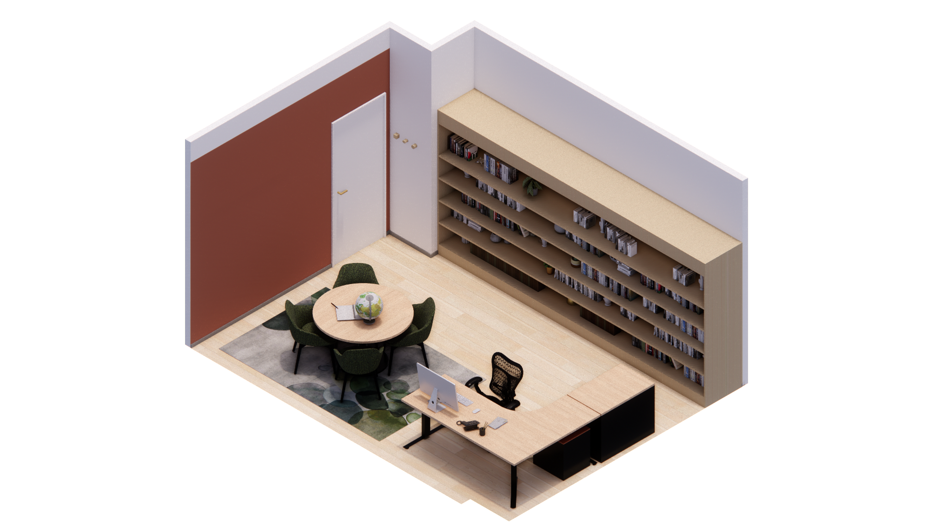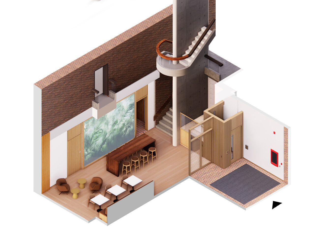 The proposed design reorganizes the existing lobby to introduce a large meeting room, informal collaboration areas, and improved circulation. These updates encourage interaction while preserving space for focused work and essential support functions. Accessibility improvements are central to the project, addressing significant level changes at the entrance and expanding access throughout the lobby.