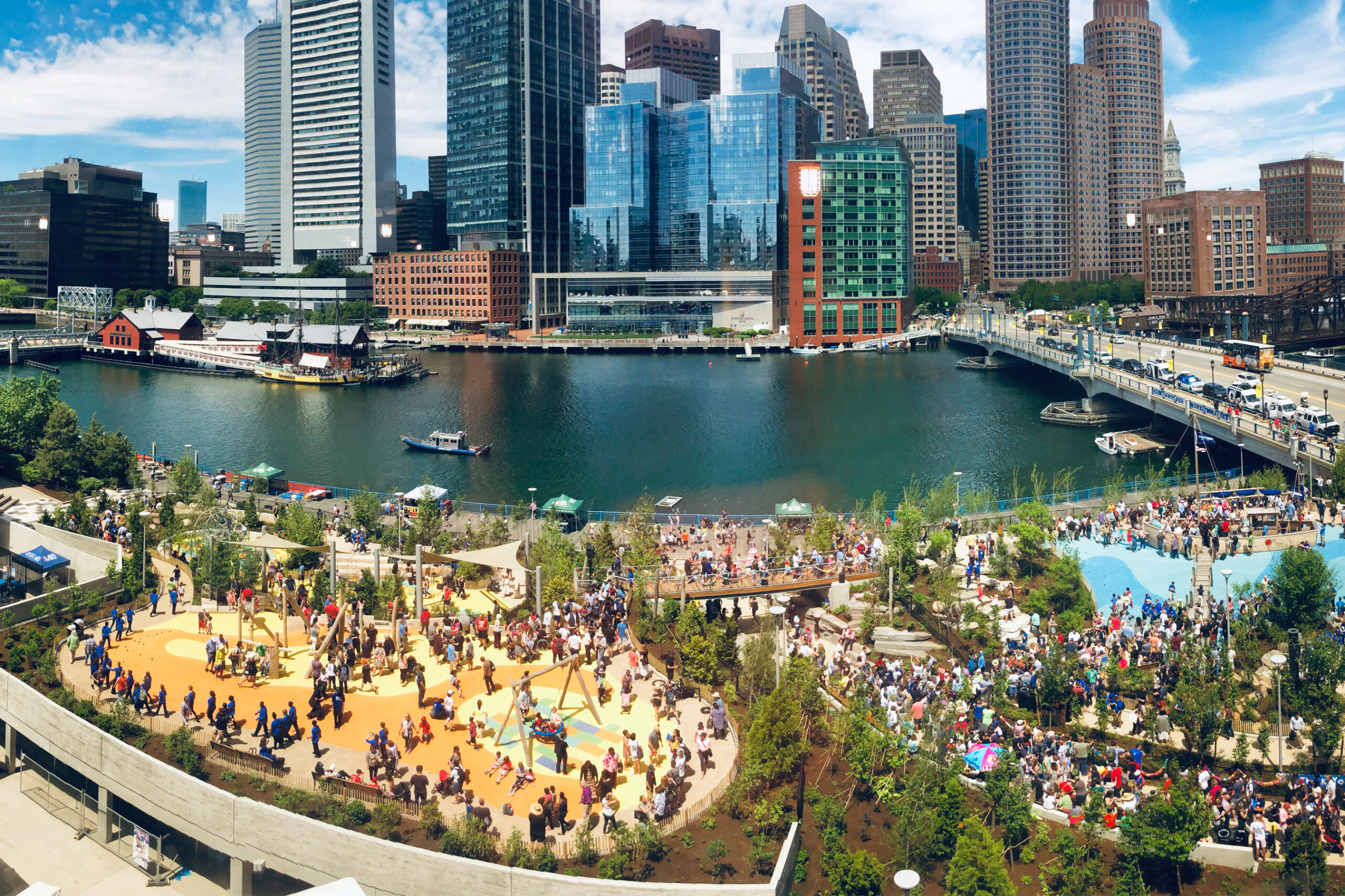 Utile is supporting landscape architecture firm Michael Van Valkenburgh Associates, Inc. (MVVA) on the design of Martin’s Park, an inclusive play area and waterfront park located next to the Boston Children’s Museum overlooking Fort Point Channel. The park is dedicated to Martin Richard, the youngest victim of the Boston Marathon bombings in 2013, and is designed to accommodate children of all abilities and backgrounds. Utile is designing a new covered parking structure that will screen the cars of the Boston Children’s Museum employees, while providing expanded park space and expansive views from its roof. Martin’s Park opened to the public in June 2019.