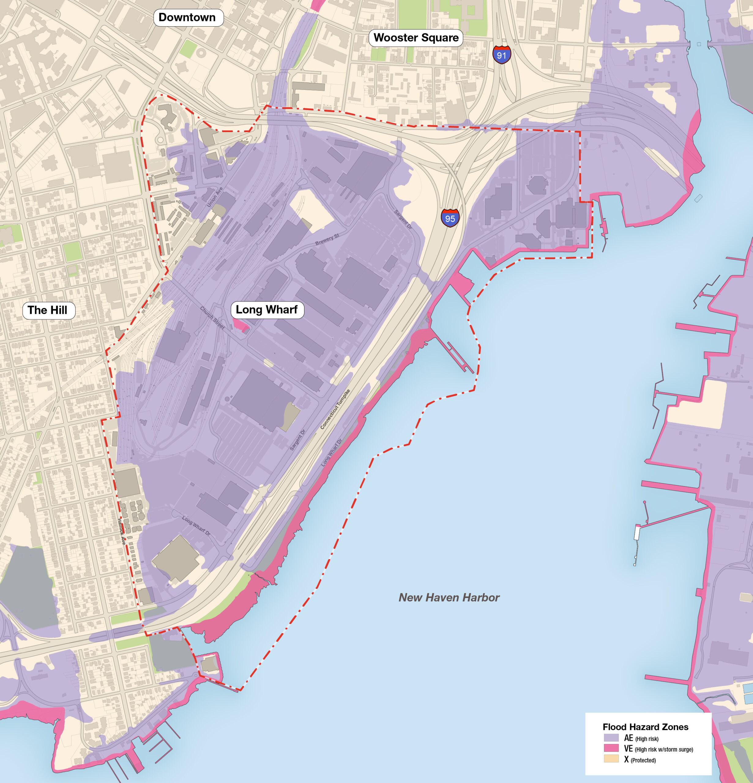 Working with the City of New Haven and lead consultant GZA, Utile helped to support the development of flood protection strategies for the Long Wharf area at the New Haven Harbor. The Long Wharf area is unique due to the heavy presence of critical infrastructure, such as regional and national rail lines and highways.