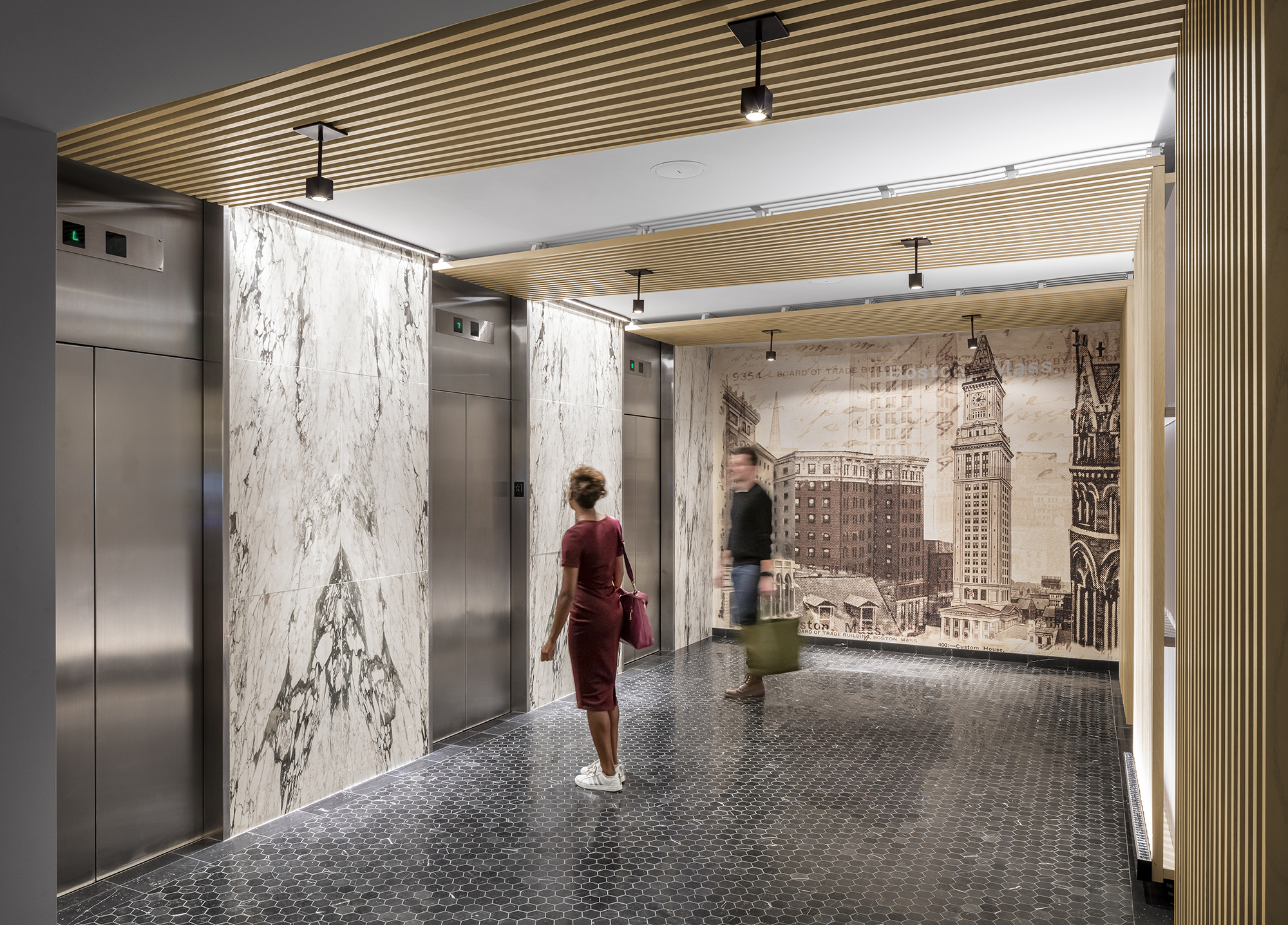 Utile provided master planning and architectural design services for improvements to the lobby and amenity areas of One India Street, an existing 11-story mixed-use building built in 1902. This project was part of owner Equity Residential’s rebranding of the 96-unit building from furnished corporate rental apartments to high-end residential apartments. A goal of the design team was to modernize the tenant experience while honoring the history of the building with timeless, durable materials and a selection of complementary artwork and furniture. The entry sequence of One India was reorganized to separate residential from commercial tenants while integrating a larger mail room and package room. An adjacent retail space was renovated into a multi-functional co-working space and fitness center to provide an up-to-date amenity package for residents of this historic building.