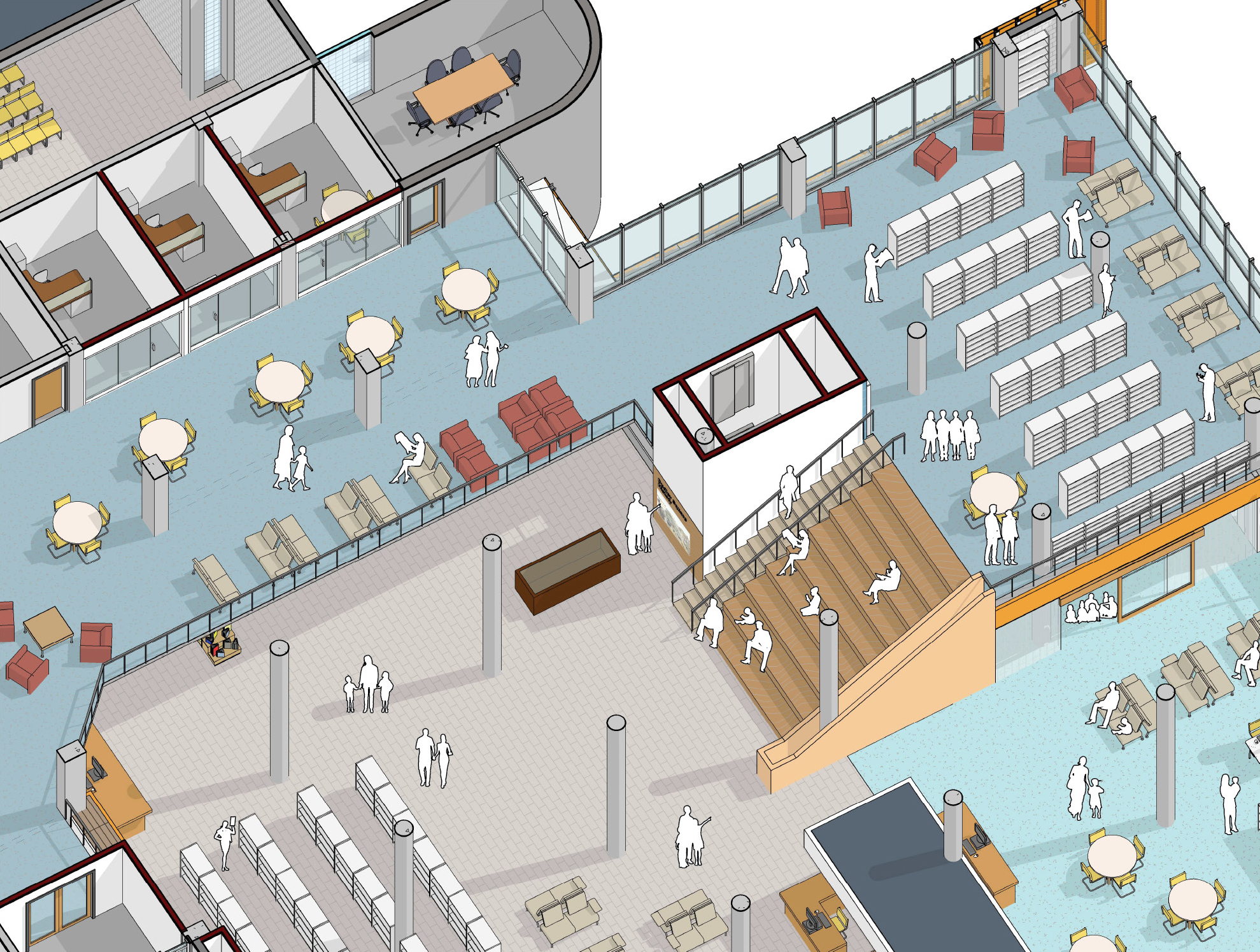 Opened in 1978, the Roxbury Branch of the Boston Public Library currently finds itself in the heart of a rapidly changing Nubian Square Neighborhood. The Brutalist building’s introverted form is in need of rehabilitation and it no longer meets the programmatic needs of the library. Utile addressed these issues in two parallel tracks—the design of a new entrance for the building and a comprehensive programming study for the rehabilitation of the building.