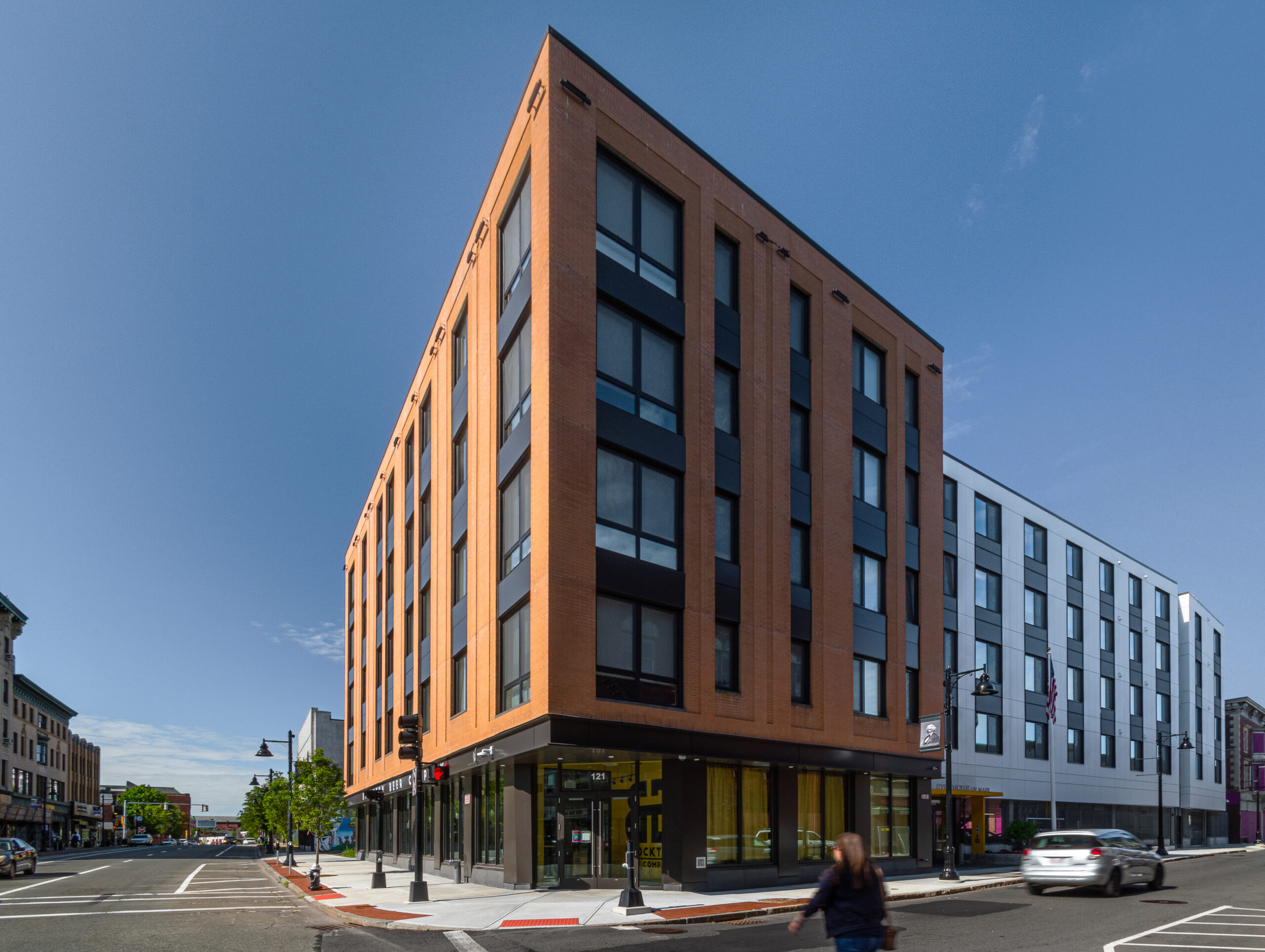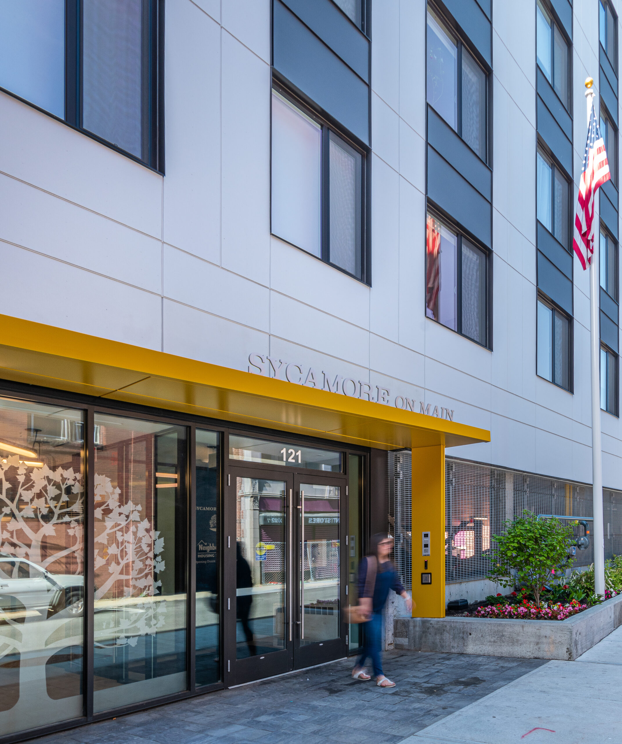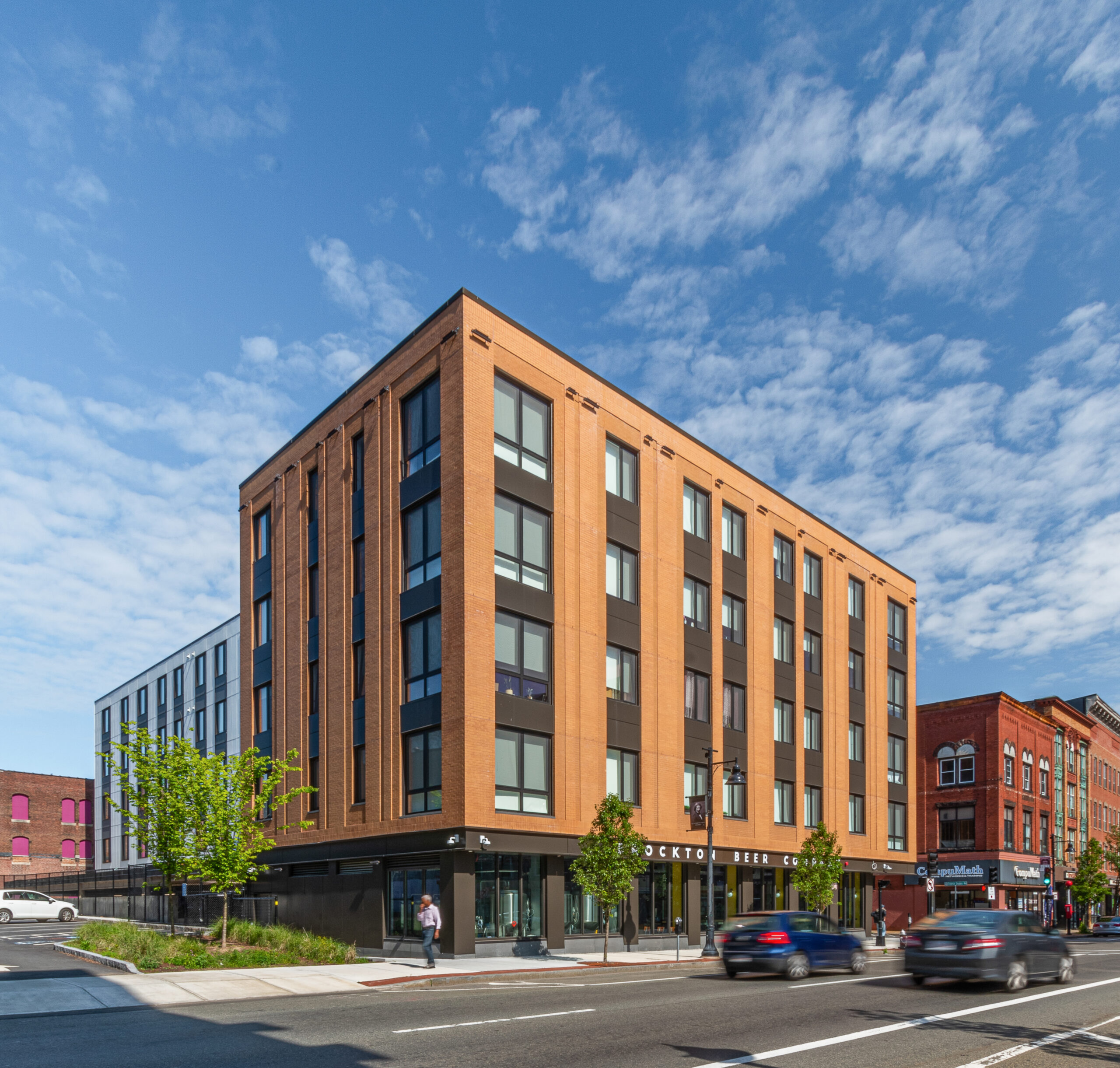 Utile worked with non-profit developer NeighborWorks Housing Solutions to revitalize 121 Main Street in Brockton, MA, the site of the previously demolished Kresge Five & Dime building. Sycamore on Main includes 48 mixed-income rental units, a below-grade parking garage, and ground floor commercial space. The building embraces the opportunity to infill a longstanding “missing tooth” along Brockton’s important Main Street corridor with a robust, contextually-appropriate building. A brick volume acknowledges the Main Street context through the use of traditional materials, storefront, and active ground floor uses, while the wing along Frederick Douglass Avenue provides a contemporary counterpoint in a scale and massing that complements the neighborhood. The site is conveniently located a few blocks from a Commuter Rail transit station.