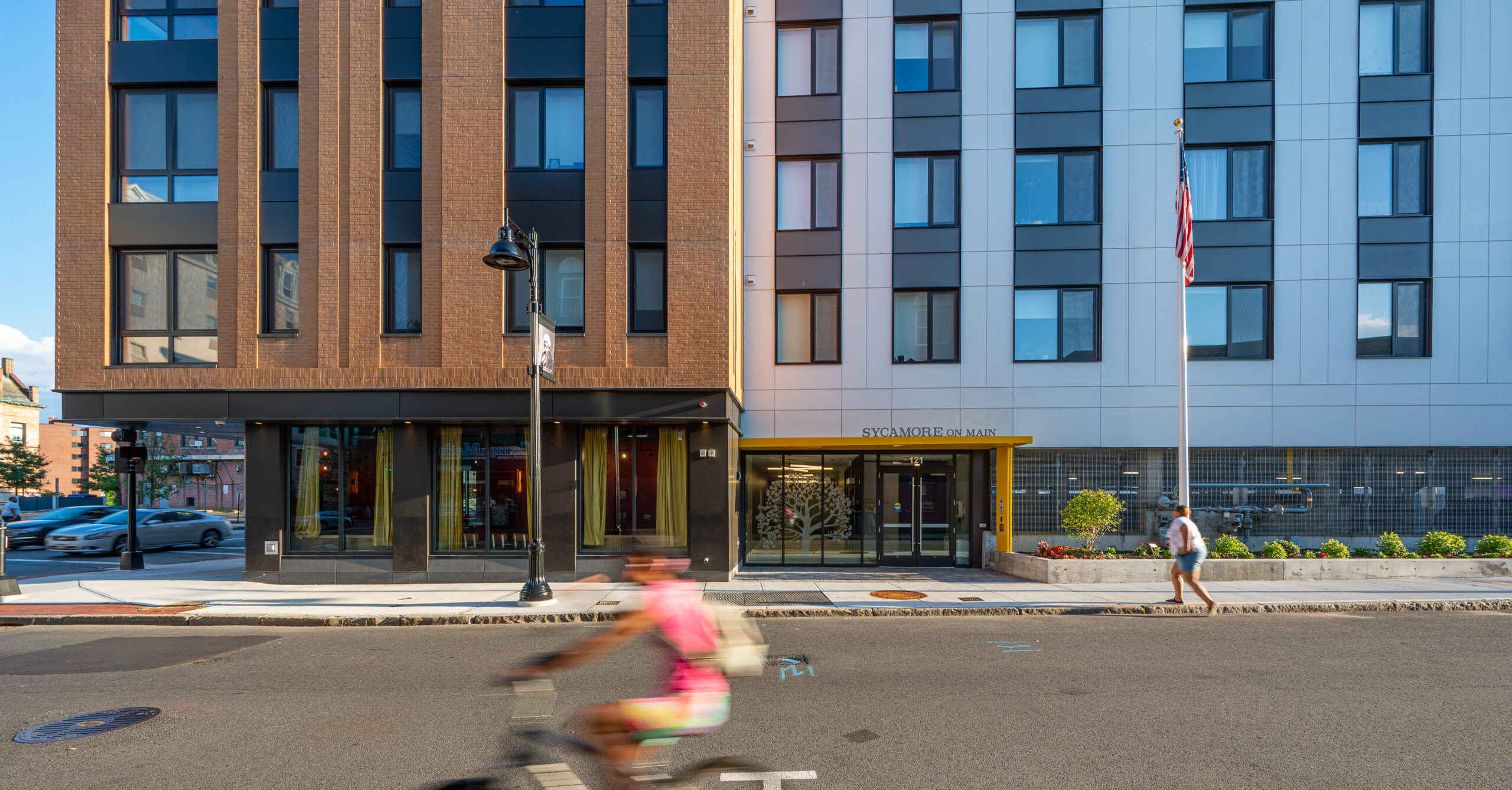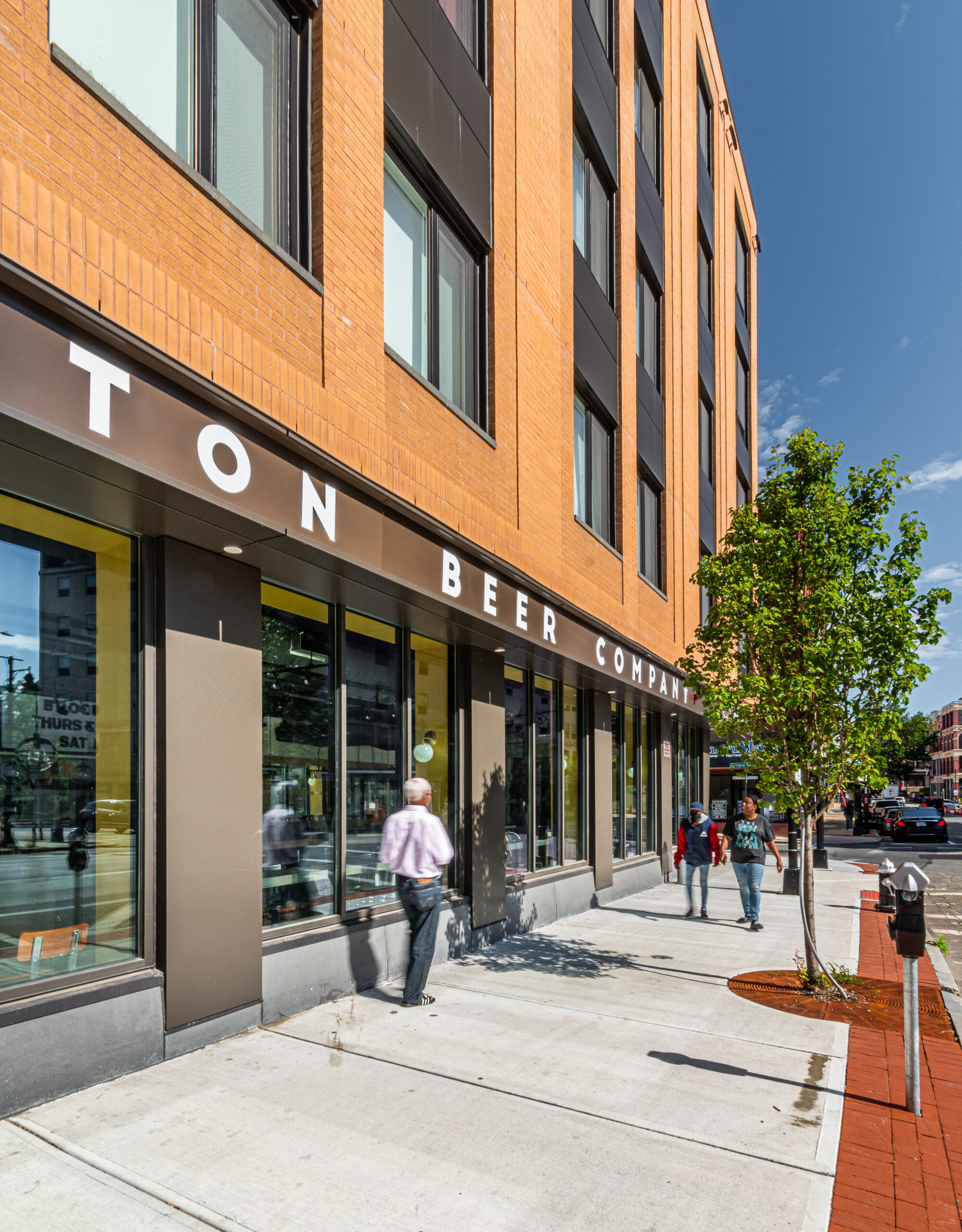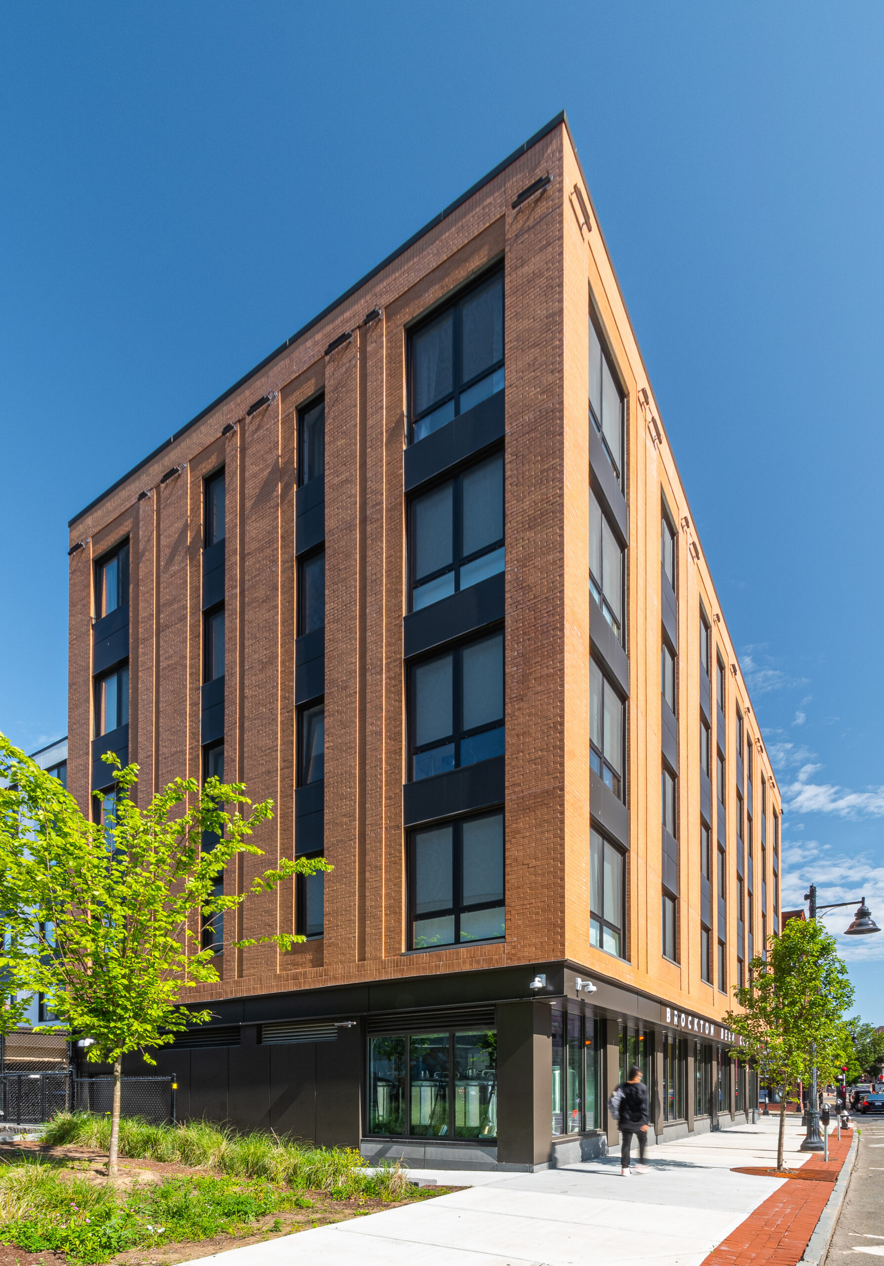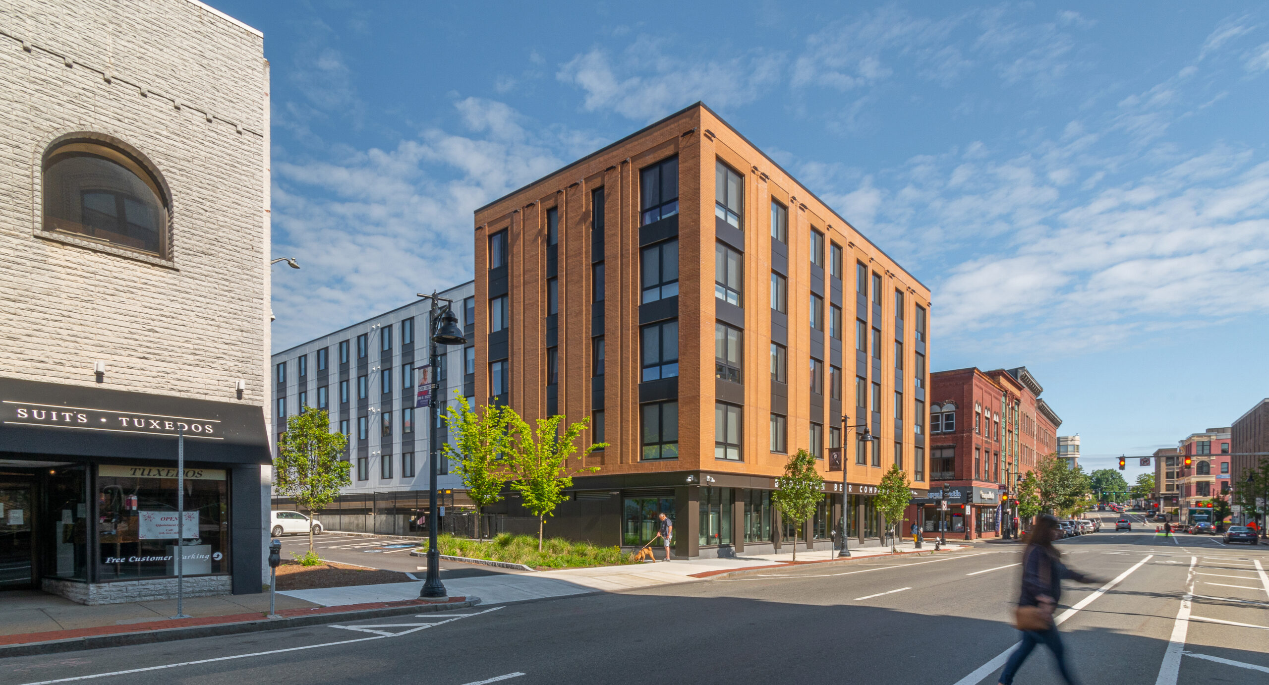 Utile worked with non-profit developer NeighborWorks Housing Solutions to revitalize 121 Main Street in Brockton, MA, the site of the previously demolished Kresge Five & Dime building. Sycamore on Main includes 48 mixed-income rental units, a below-grade parking garage, and ground floor commercial space. The building embraces the opportunity to infill a longstanding “missing tooth” along Brockton’s important Main Street corridor with a robust, contextually-appropriate building. A brick volume acknowledges the Main Street context through the use of traditional materials, storefront, and active ground floor uses, while the wing along Frederick Douglass Avenue provides a contemporary counterpoint in a scale and massing that complements the neighborhood. The site is conveniently located a few blocks from a Commuter Rail transit station.