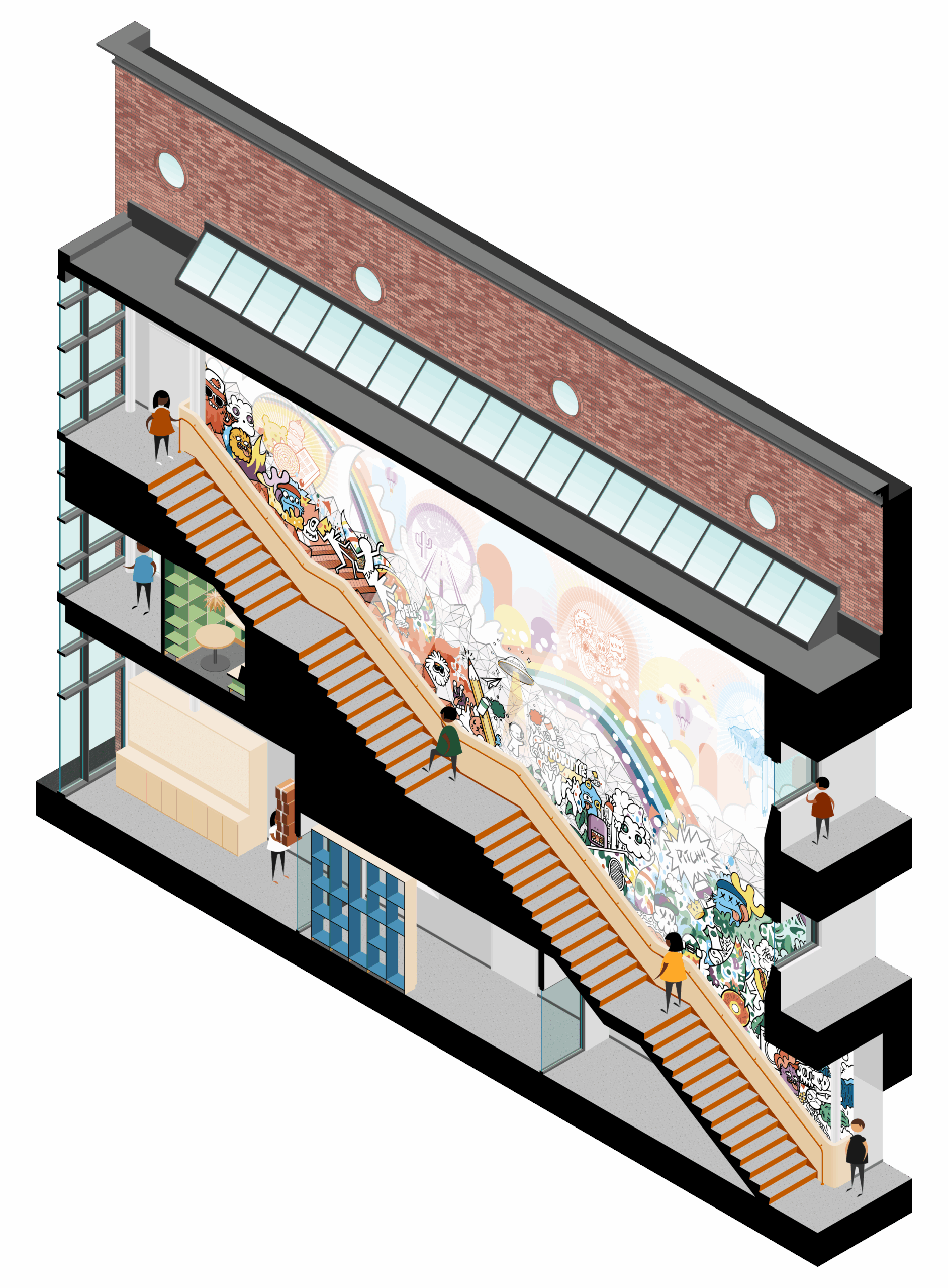 Utile worked with The Possible Zone (TPZ), to transform a 36,000 SF building into their Innovation Center. At the entrepreneurship/work-based learning program for Boston high school students, teens develop social-emotional learning and technical skills, professional identities, and networks needed for future success. TPZ envisions this building as a hub where students, entrepreneurs, and local businesses can ideate and prototype on site.