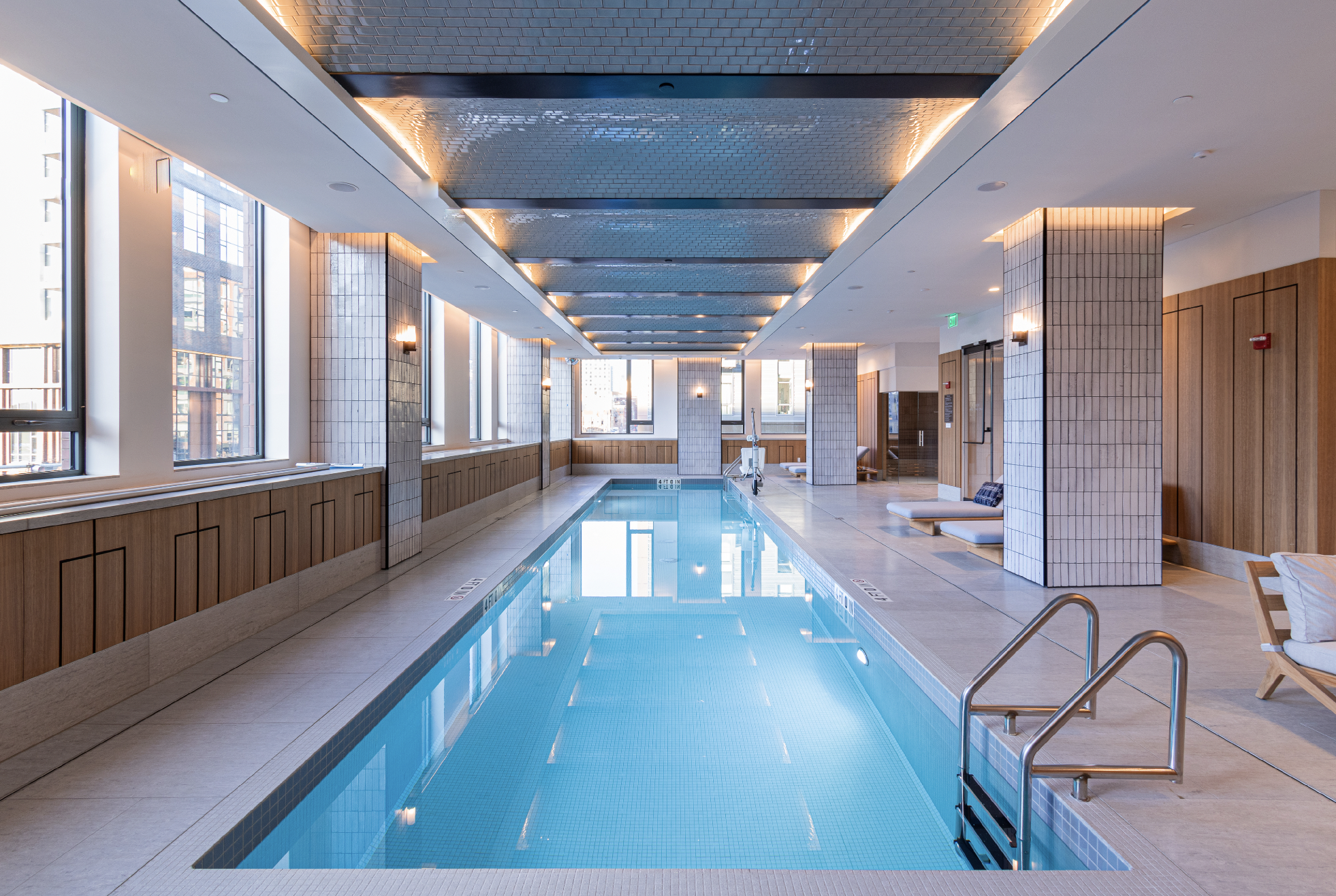 The 356,000 square foot building includes a mix of rental and ownership units, and will designate 20 percent of the units on site as affordable. An underground, three-level garage is designed to accommodate 180 parking spaces. A multitude of amenity spaces include meeting rooms, fitness center, indoor pool, and outdoor terraces on its multiple rooftop levels.
