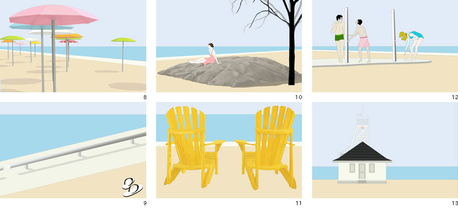 These perspectives are part of his project for the Toronto Waterfront: Sugar Beach/Jarvis Slip. The people in the renderings remind me of the paintings of Alex Katz.