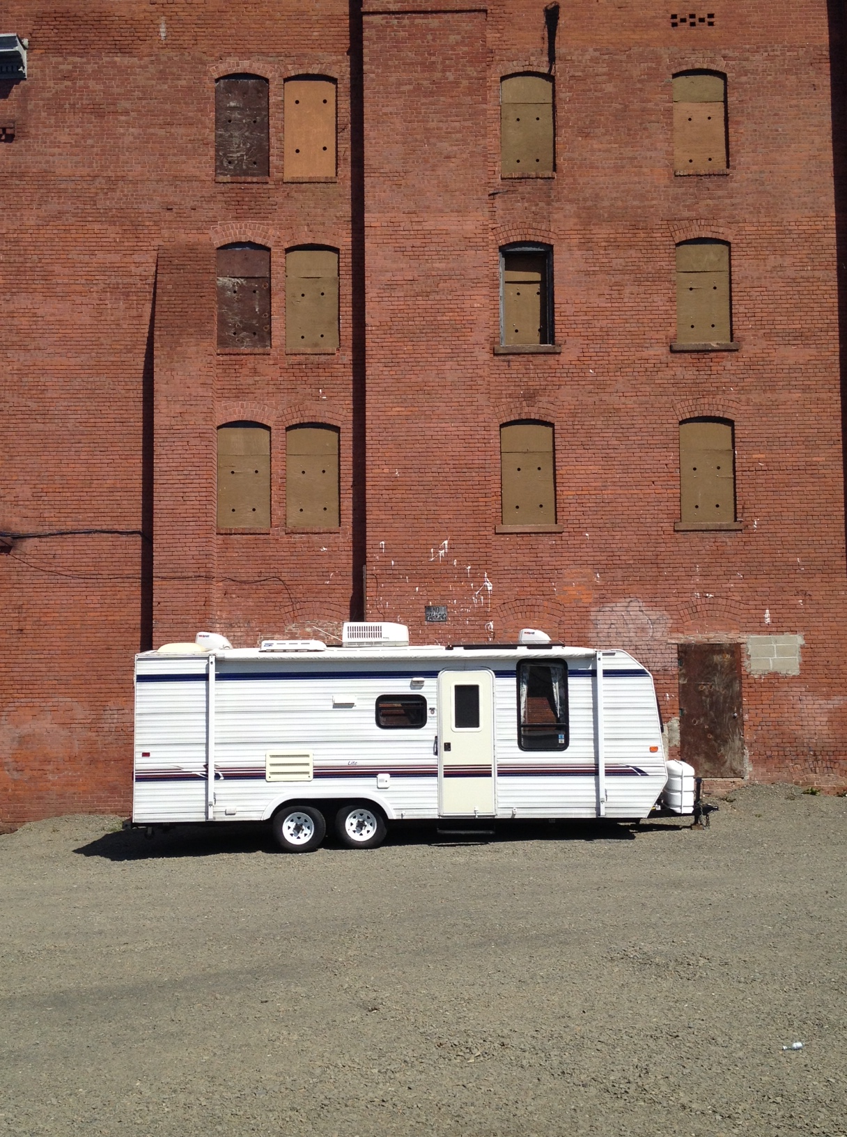 So, it was exciting to see what this bold, opportunistic individual has done with a vacant lot in Hartford. On a walking tour recently, we turned a corner to see an RV oddly out of place in this empty lot on the outskirts of downtown. Walking a bit closer, with bated curiosity, we saw this sign pointing to the trailer. What you don’t see is the public safety complex to the left. Here was someone who saw an untapped market, deciding to set up shop as a bail-bondsmen right across the street. This is a person of exemplary ambition and stupidity. He was tapping into the city power grid illegally, and we’re not so certain that sign was authorized, much less operating a business on this property. The City has taken action and the business has moved on.