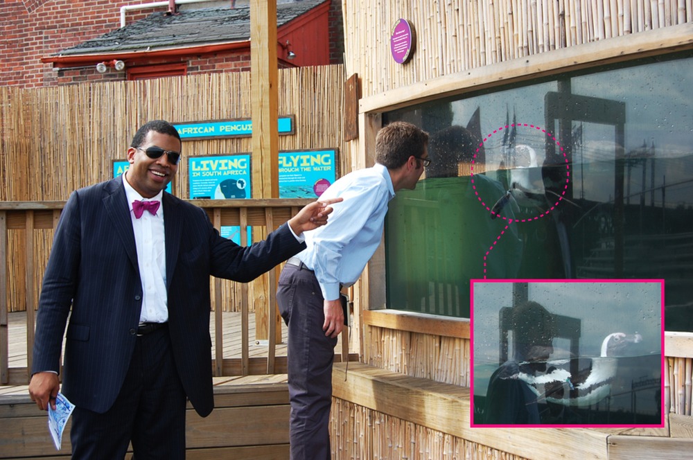 While on assignment researching the urban design case study that the leadership of Norwalk, Connecticut had selected for the upcoming Mayors’ Institute on City Design, Arthur Jemison (GLC Development Resources) and I took time out to enjoy the playful antics of a penguin at the Maritime Aquarium there.