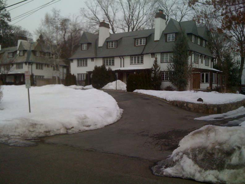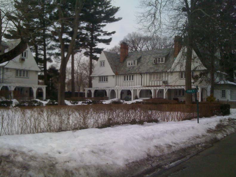 A couple of excellent 1920’s suburban “cluster” housing in Bronxville, NY, courtesy of F.O.U. and Planner Patrick Hewes. We suspect that these were originally middle class rental housing in a very upscale village. The subordination of the expression of the individual unit to the larger “unit” is an increasingly rare strategy for making multi-family properties blend into single family-environs, particularly in our era of home ownership and condo-ization. These seem to succeed because the individual units are not particularly large, although they currently command $1M on the market. The middle units are only 17’ wide.