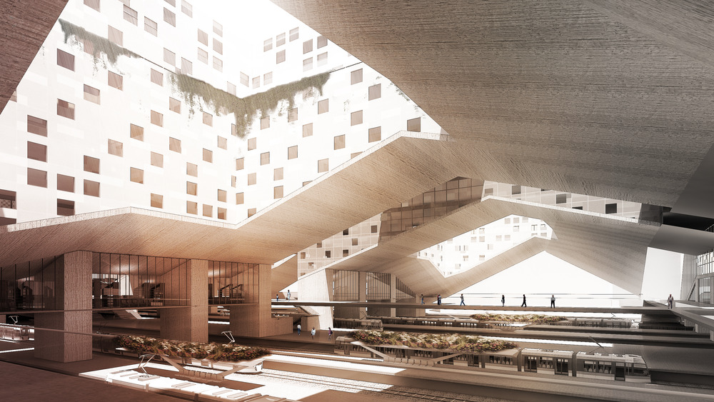 Jay Tsai and Miron Nawratil, two students at the Yale School of Architecture, proposed a not-so-far-fetched alternative to the current plans for alleviating the shortage of track space at Boston’s South Station. MassDOT’s current plan is to re-locate the existing post office facility to provide space for additional tracks, opening up options for expanding commuter rail service to underserved communities. In Tsai and Nawratil’s proposal, the Fort Point Channel is dammed and drained south of Summer Street (think The Netherlands) to create more than enough sub-surface space for the ideal future track capacity of the station. The benefit is a fully subterranean train station, allowing for the redevelopment of both the existing and new track areas for urban development that can knit the Leather District directly to the loft buildings in the Fort Point District.
