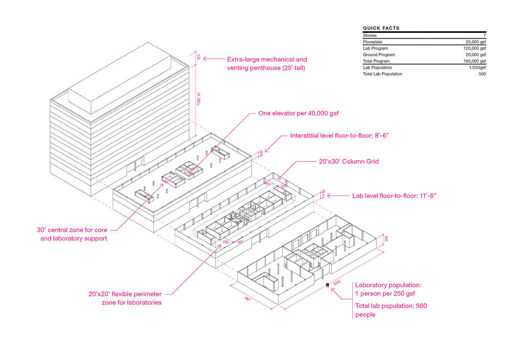 Array of building forms from Siteless: 1001 Building Forms, by Francois Blanciak (2008); Laboratory building diagram from Urbanism Starter Kit, developed by Utile for Yale Urbanism Studio (2009)