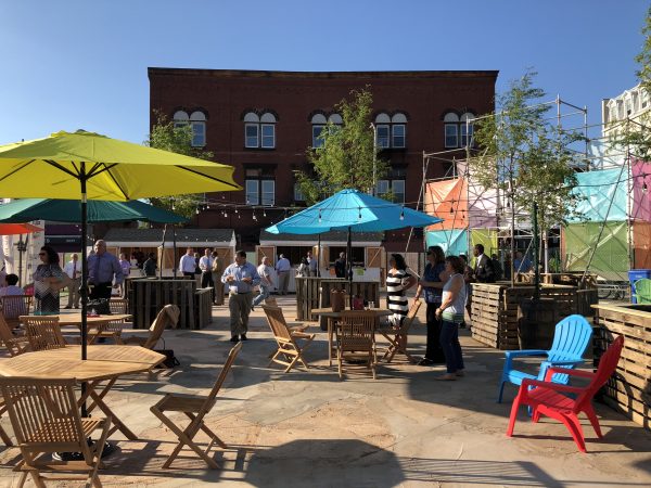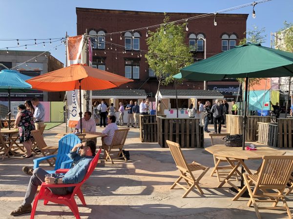 Utilians recently visited the PROVA! beer garden in Brockton, MA and were impressed by how our concept has been brought to life. Earlier this year, Utile produced a sketch for developer NeighborWorks Southern Mass and general contractor NEI, who in turn built a beautiful beer garden in downtown Brockton on the future site of our 121 Main Street mixed-use housing project. We were struck by how faithfully the feeling of the sketch has been translated into reality, causing us to reflect on how we represent design intention through drawing. Utile was not deeply involved with the construction of the beer garden, but NeighborWorks was so convinced of this perceived feeling by just one sketch that they nearly identically replicated that image.