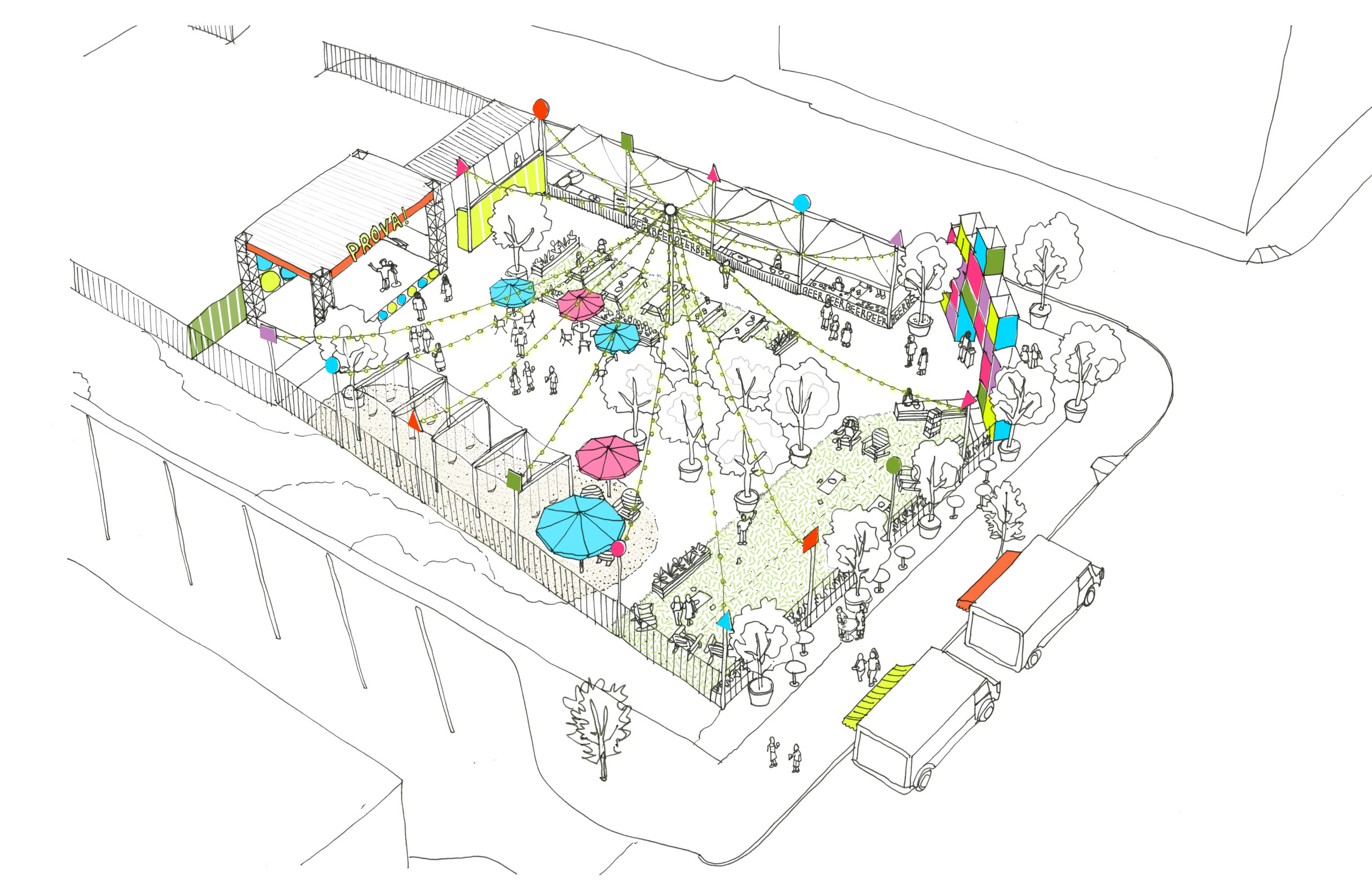 As an office and a practice, Utile does not typically consider aspects like a space’s aesthetic or form to be initial driving factors of the design process. Rather, our approach is predicated on the idea that the “beauty” of a design comes from the legibility and pragmatism of its problem solving. The careful resolution of a project’s details, its response to context, and its ability to mediate and resolve the needs of the user are what produce its appearance, not adherence to an ideologically predetermined, often arbitrary visual quality or aesthetic. However, in the case of PROVA! a certain visual quality was exactly what was needed to achieve the client’s goals of drawing people into the space and enlivening what might have been an otherwise desolate plot in the heart of Brockton. Indicative of this is the way in which NeighborWorks and NEI replicated elements of Utile’s sketch, such as the use of scaffolding to create a ceremonial gateway into the space, despite the absence of any “spec” for this material/construction method, or any inherent material “usefulness”. Rather than functionality in the traditional sense, the “utility” of Utile’s sketch for the space relies on the clever employment of everyday materials to produce an experience that is anything but quotidian. This expands the definition of what makes Utile “useful”.